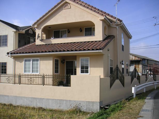 建物と同じ色のジョリパットをブロック塀の上にも塗りました!